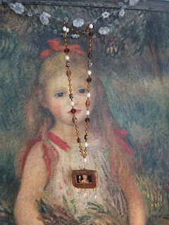 Necklace is adorned with cream freshwater pearls, smoky faceted glass, topaz swarovski, and vintage filigree beads 17 - 18 1/2 inches long. (length can be adjusted upon request when purchased Time and care is spent collecting tiny images that speak to my soul ~
